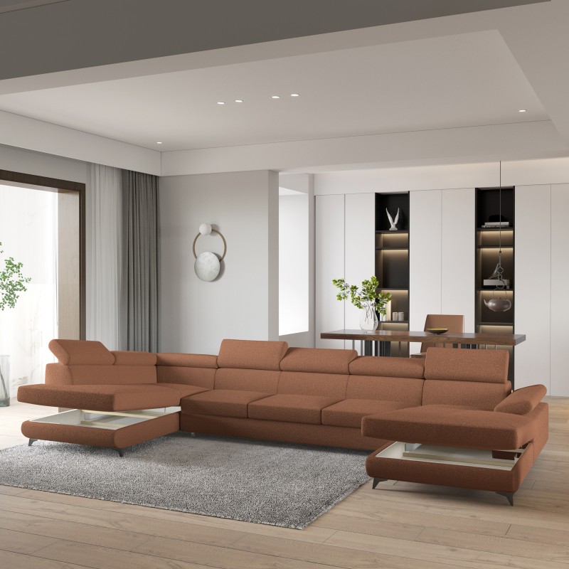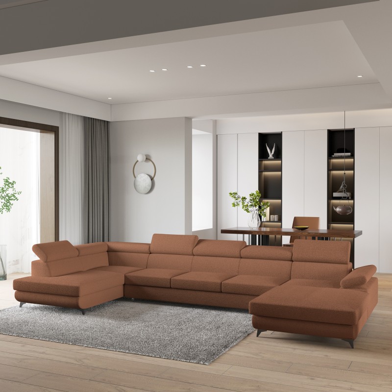 Ten model to odpowiedź na potrzeby dużych rodzin i miłośników komfortu – oferuje imponującą powierzchnię spania, regulowane zagłówki i podłokietnik oraz dużą głębokość siedziska. Sprawdzi się zarówno jako przestronny narożnik dzienny, jak i funkcjonalne łóżko na specjalne okazje.