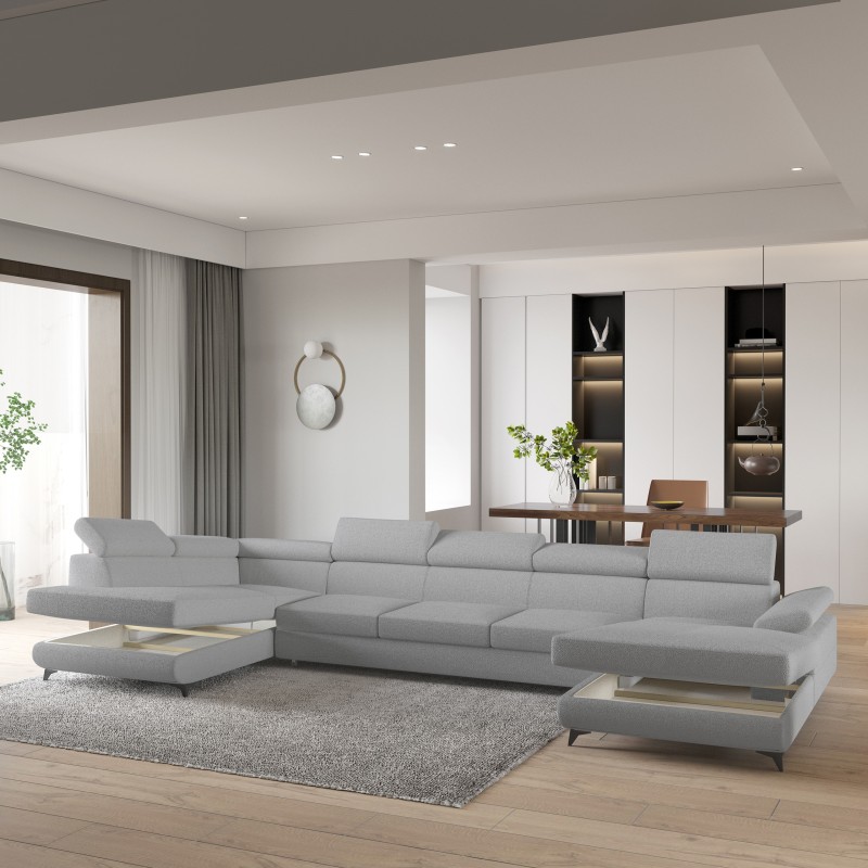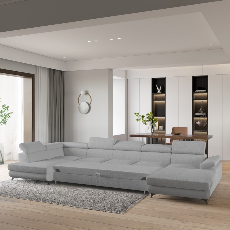 Ten model to odpowiedź na potrzeby dużych rodzin i miłośników komfortu – oferuje imponującą powierzchnię spania, regulowane zagłówki i podłokietnik oraz dużą głębokość siedziska. Sprawdzi się zarówno jako przestronny narożnik dzienny, jak i funkcjonalne łóżko na specjalne okazje.