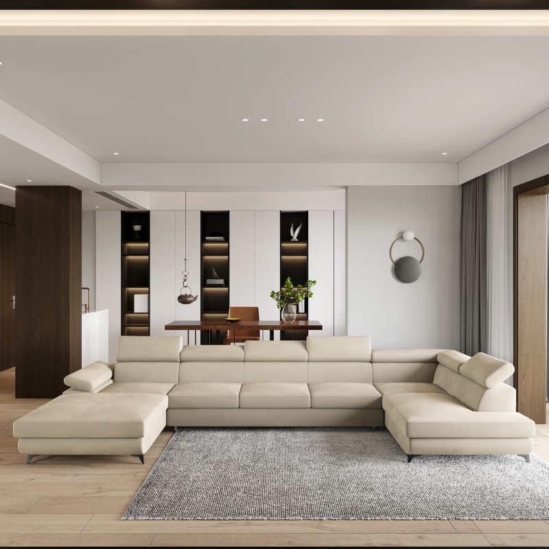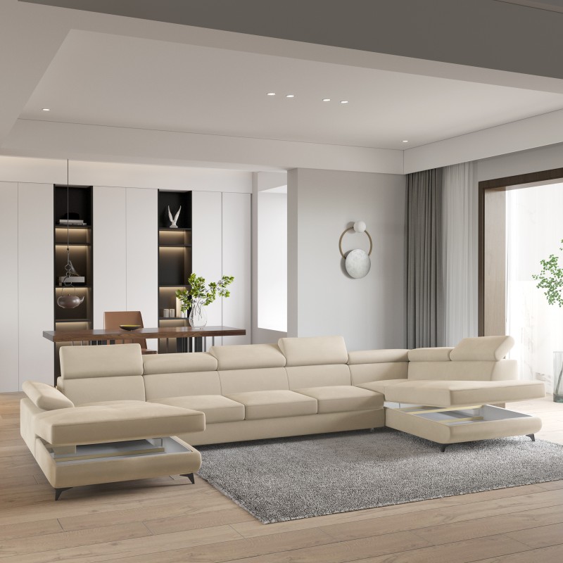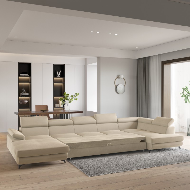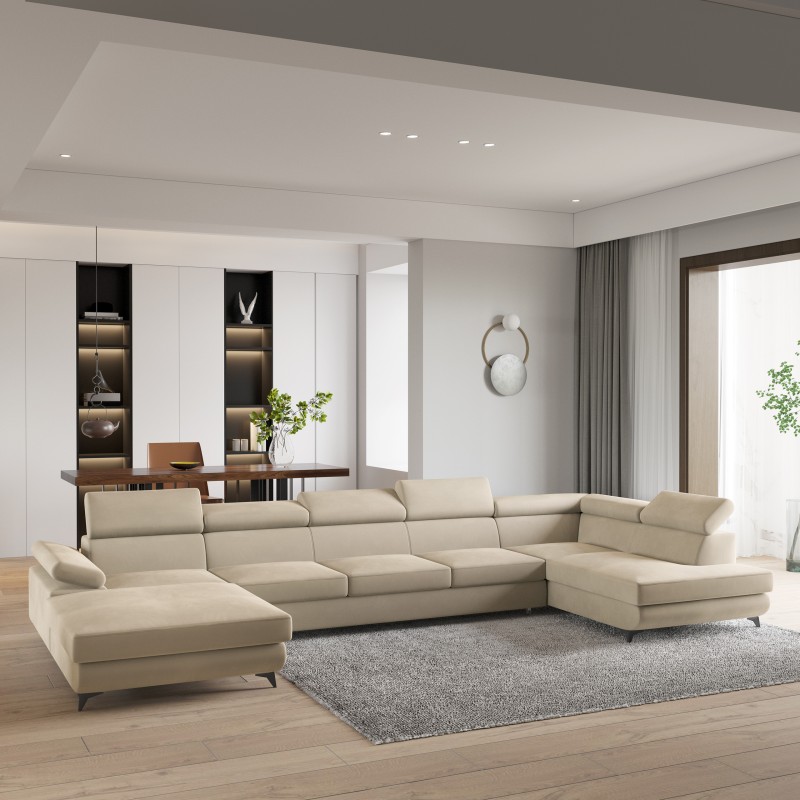Jeśli szukasz narożnika, który pomieści całą rodzinę, zachwyci funkcjonalnością i wprowadzi do wnętrza nutę luksusu – Montiva jest stworzony właśnie dla Ciebie. To monumentalna konstrukcja, która nie tylko robi wrażenie rozmiarem, ale też perfekcyjnie łączy nowoczesną elegancję z codzienną wygodą.