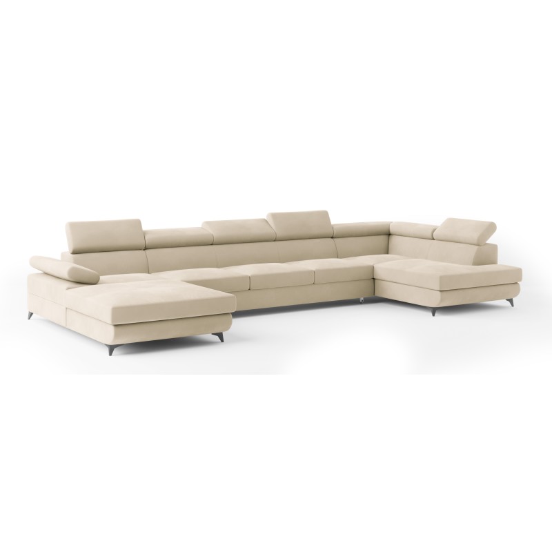 Masseno Narożnik MONTIVA z funkcją spania i pojemnikiem na pościel Narozniki U, Rozkładana sofa - Kremowy, MONOLITH 04