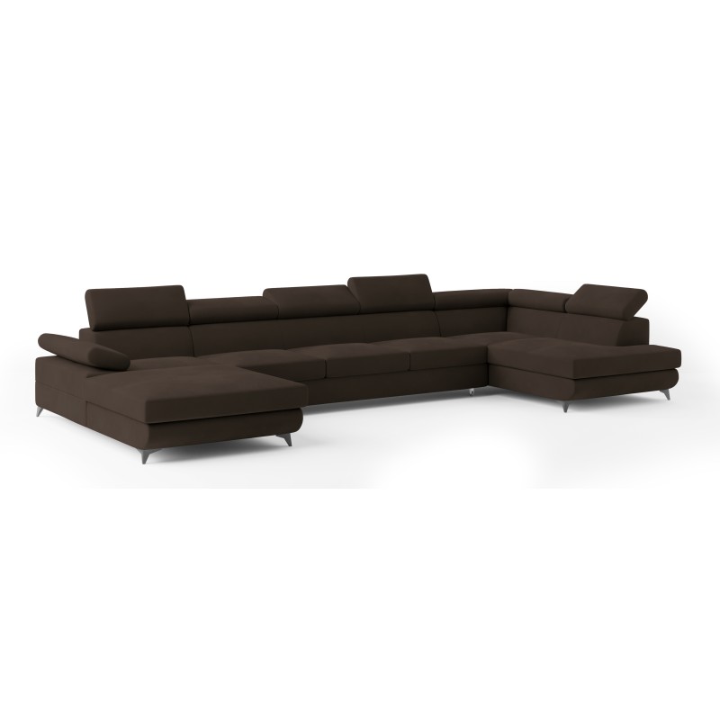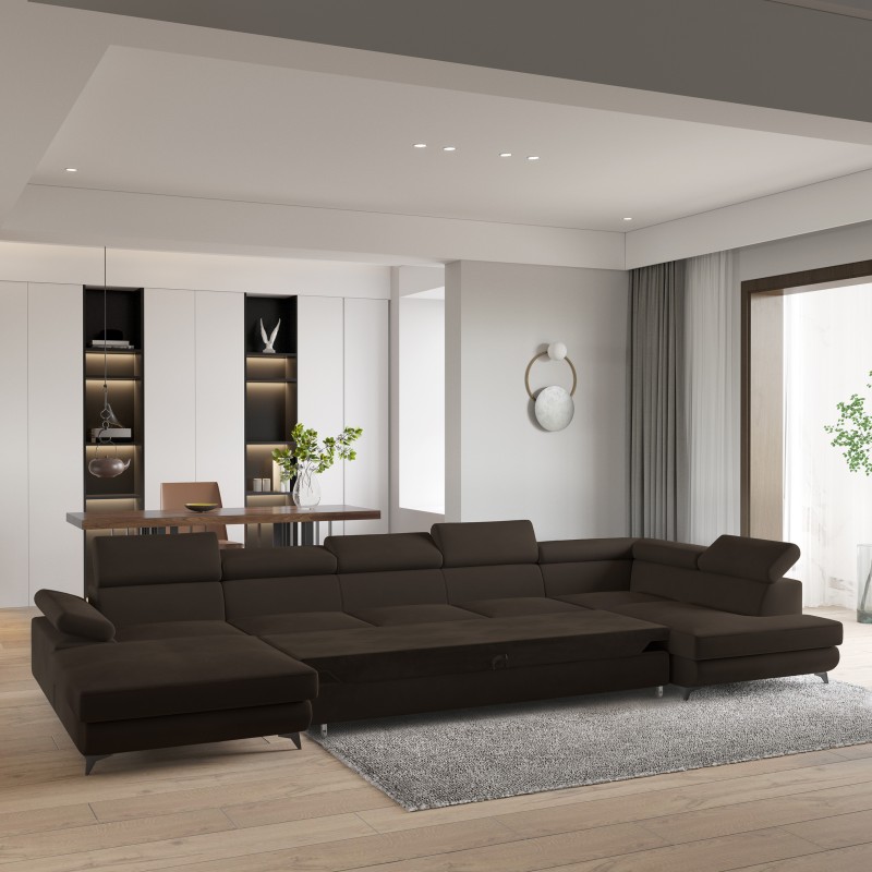 Masseno Narożnik MONTIVA z funkcją spania i pojemnikiem na pościel Narozniki U, Rozkładana sofa - Brązowy, MONOLITH 29