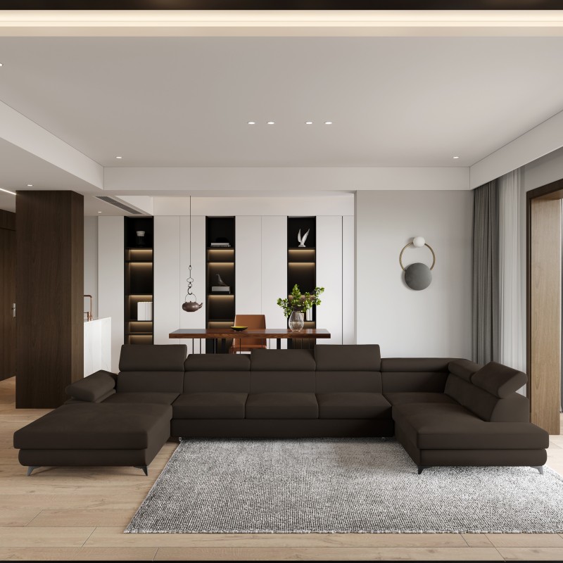 Jeśli szukasz narożnika, który pomieści całą rodzinę, zachwyci funkcjonalnością i wprowadzi do wnętrza nutę luksusu – Montiva jest stworzony właśnie dla Ciebie. To monumentalna konstrukcja, która nie tylko robi wrażenie rozmiarem, ale też perfekcyjnie łączy nowoczesną elegancję z codzienną wygodą.
