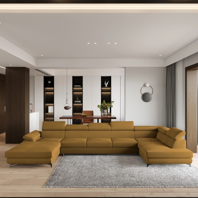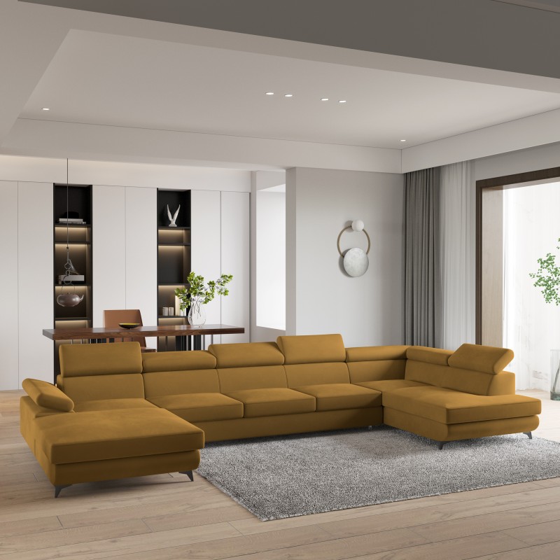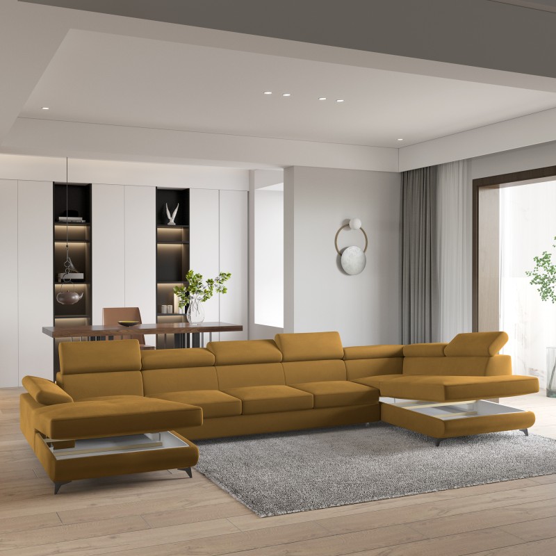 Masseno Narożnik MONTIVA z funkcją spania i pojemnikiem na pościel Narozniki U, Rozkładana sofa - Żółty, MONOLITH 48