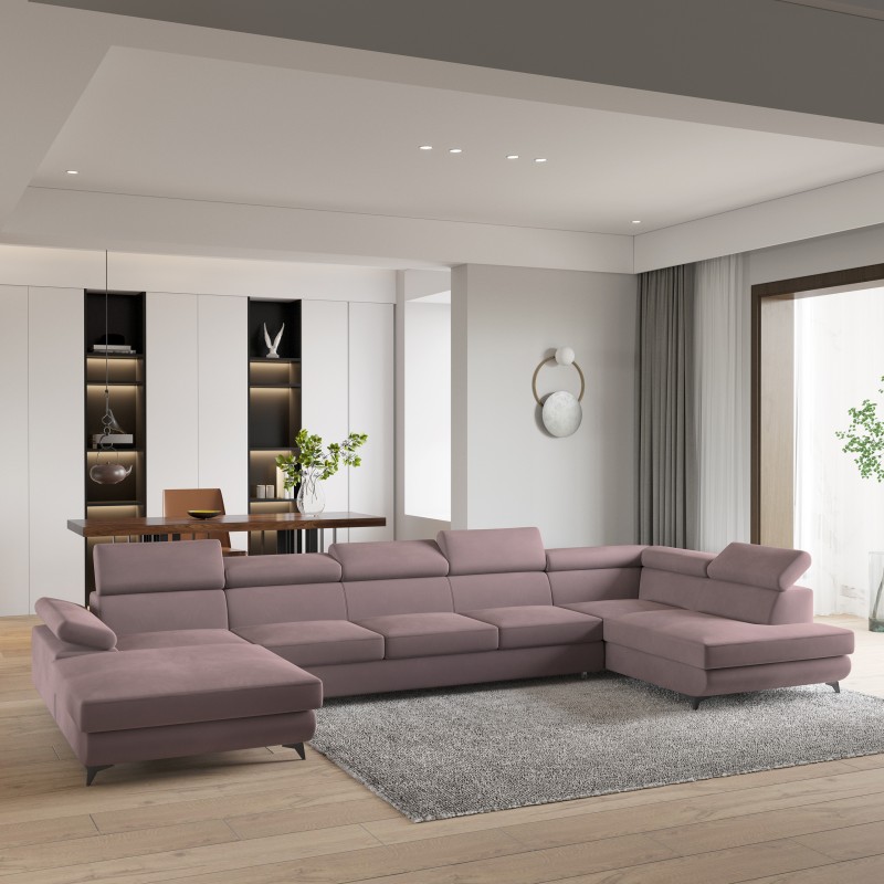 Jeśli szukasz narożnika, który pomieści całą rodzinę, zachwyci funkcjonalnością i wprowadzi do wnętrza nutę luksusu – Montiva jest stworzony właśnie dla Ciebie. To monumentalna konstrukcja, która nie tylko robi wrażenie rozmiarem, ale też perfekcyjnie łączy nowoczesną elegancję z codzienną wygodą.