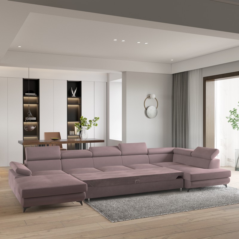 Masseno Narożnik MONTIVA z funkcją spania i pojemnikiem na pościel Narozniki U, Rozkładana sofa - Wrzosowy, MONOLITH 62