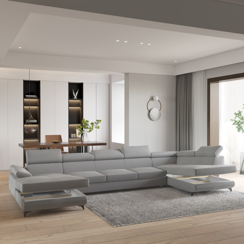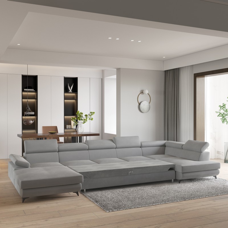 Masseno Narożnik MONTIVA z funkcją spania i pojemnikiem na pościel Narozniki U, Rozkładana sofa - Jasnoszary, MONOLITH 84