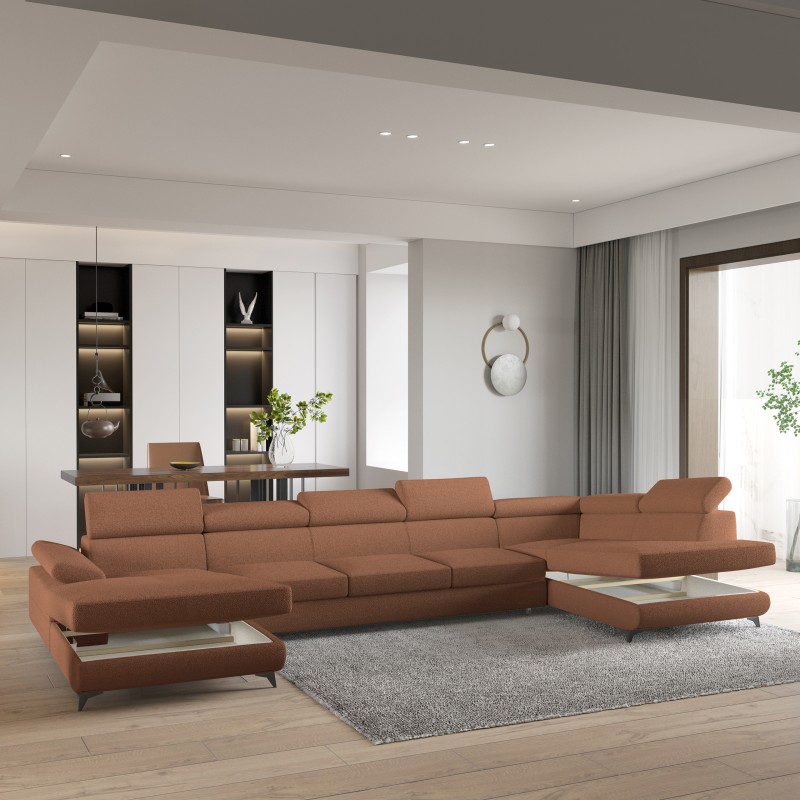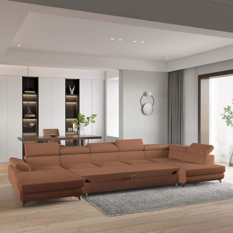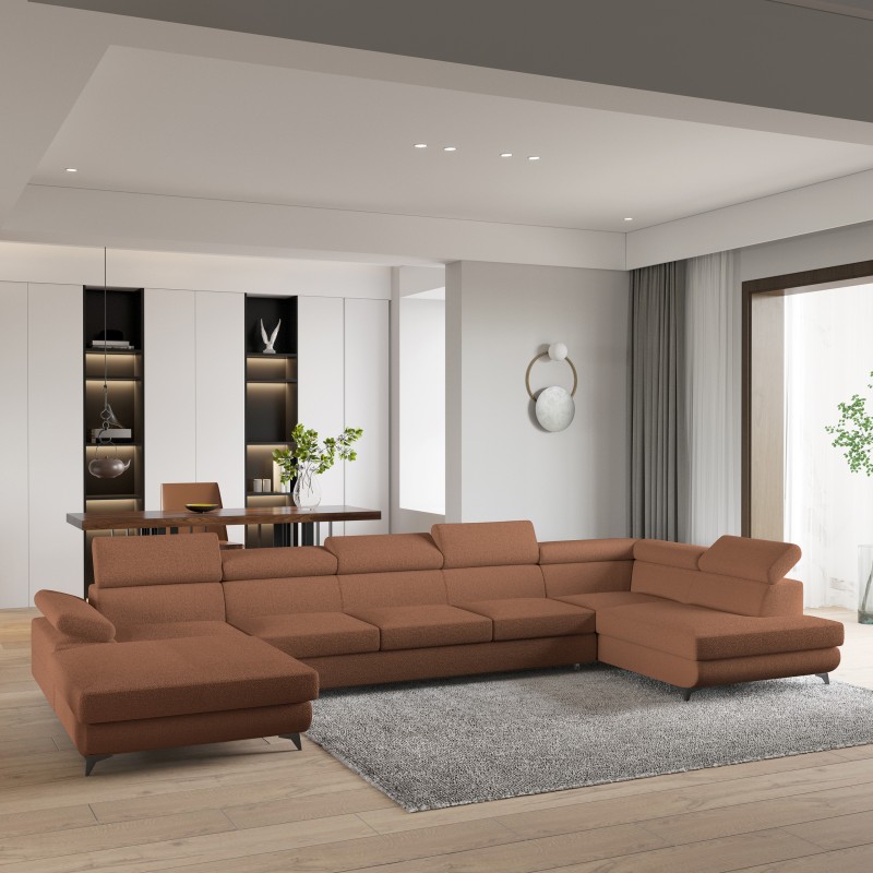 Ten model to odpowiedź na potrzeby dużych rodzin i miłośników komfortu – oferuje imponującą powierzchnię spania, regulowane zagłówki i podłokietnik oraz dużą głębokość siedziska. Sprawdzi się zarówno jako przestronny narożnik dzienny, jak i funkcjonalne łóżko na specjalne okazje.