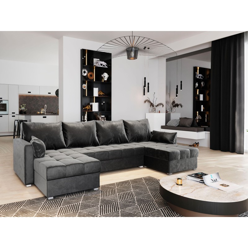 Masseno Narożnik NAKO z funkcją spania i pojemnikiem na pościel Narozniki U, Rozkładana sofa - Szary, PAROS 06