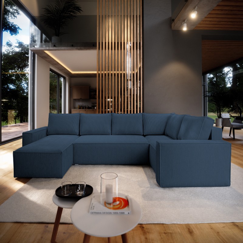 Masseno Narożnik NORENA z funkcją spania i pojemnikiem na pościel Narozniki U, Rozkładana sofa - Niebieski, POSO 05