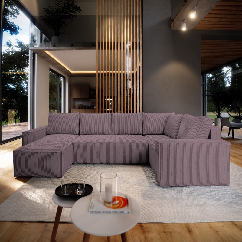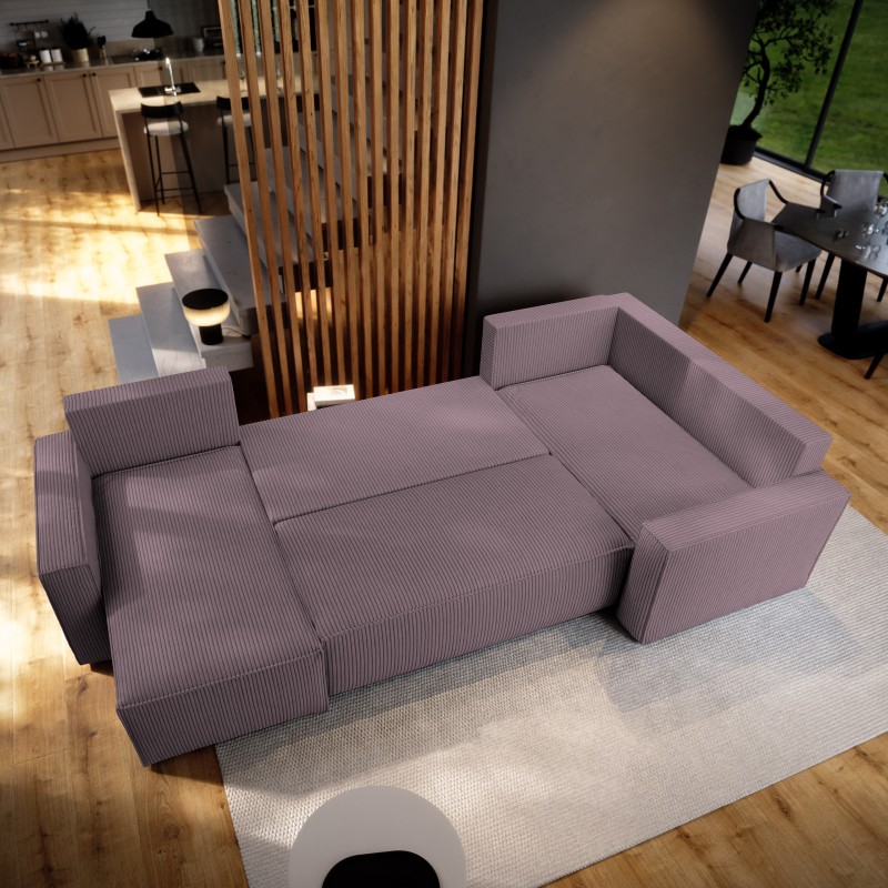 Masseno Narożnik NORENA z funkcją spania i pojemnikiem na pościel Narozniki U, Rozkładana sofa - Wrzos, POSO 130
