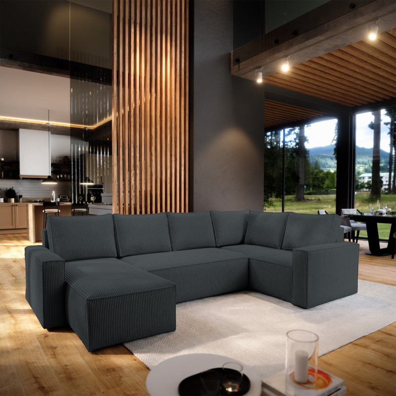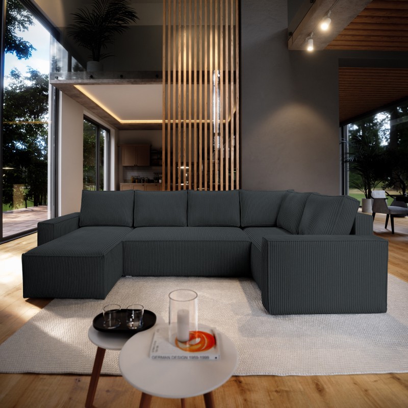 Masseno Narożnik NORENA z funkcją spania i pojemnikiem na pościel Narozniki U, Rozkładana sofa - Grafitowy, POSO 34