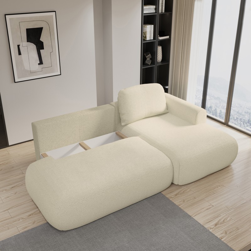 Masseno Narożnik NUVIRA z funkcją spania i pojemnikiem na pościel Narozniki L, Rozkładana sofa - Kremowy, QUELLE 02