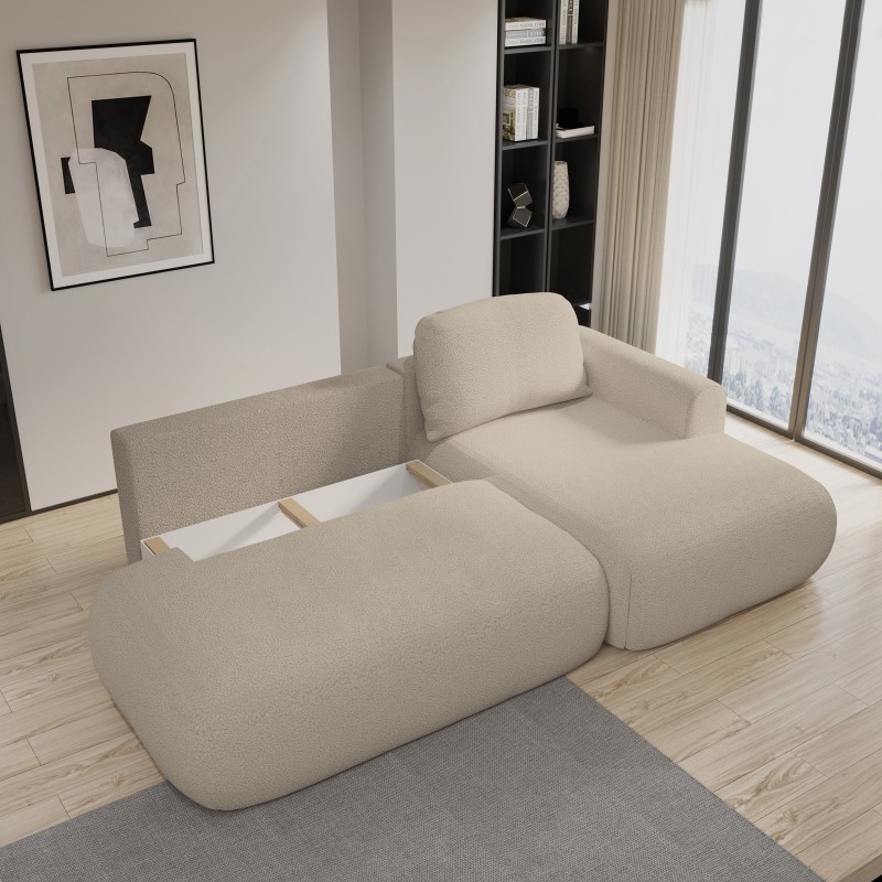 Masseno Narożnik NUVIRA z funkcją spania i pojemnikiem na pościel Narozniki L, Rozkładana sofa - Beżowy, QUELLE 05