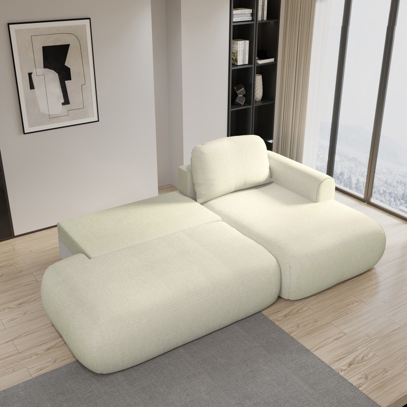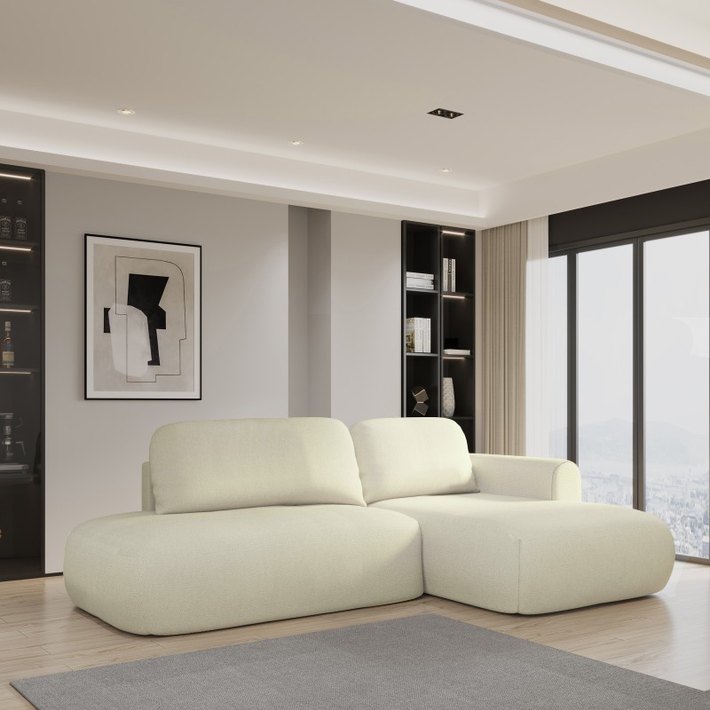 NUVIRA to narożnik, który zachwyca od pierwszego spojrzenia swoją miękką, organiczną formą i subtelną elegancją. To mebel stworzony z myślą o nowoczesnych wnętrzach, w których liczy się nie tylko design, ale również funkcjonalność i wygoda użytkowania. Zaoblone kształty, przytulna faktura tkaniny oraz praktyczne rozwiązania sprawiają, że NUVIRA staje się sercem domowej strefy relaksu.