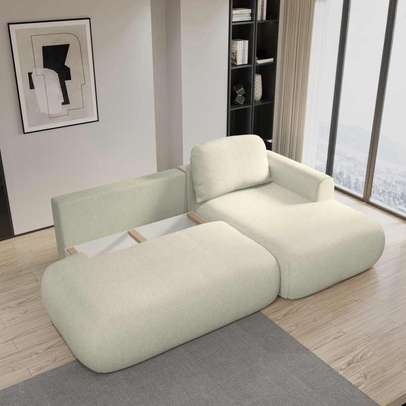 Masseno Narożnik NUVIRA z funkcją spania i pojemnikiem na pościel Narozniki L, Rozkładana sofa - Kremowy, SORO 02