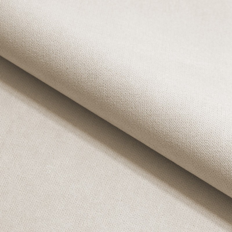 Narożnik został tapicerowany elegancką tkaniną SORO o drobnej, plecionej strukturze z subtelnym welurowym meszkiem. Jej miękka i przyjemna w dotyku powierzchnia nadaje meblowi wizualną lekkość i szlachetny połysk, łącząc stylowy wygląd z wysoką trwałością na co dzień.