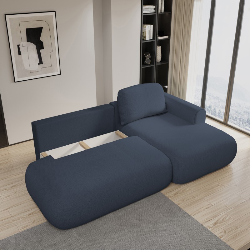 Masseno Narożnik NUVIRA z funkcją spania i pojemnikiem na pościel Narozniki L, Rozkładana sofa - Niebieski, SORO 76