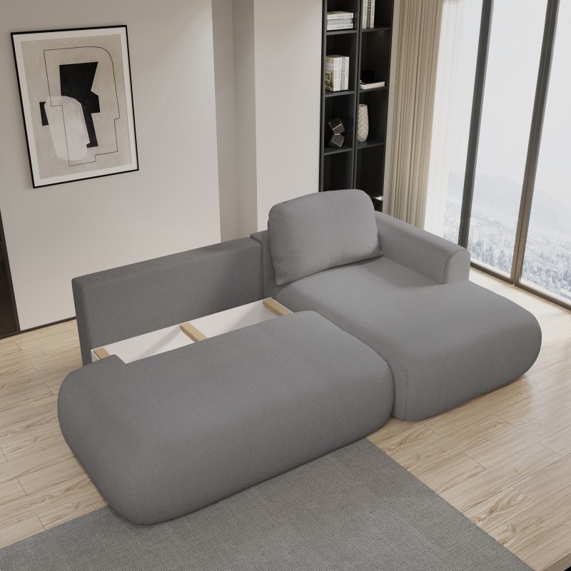Masseno Narożnik NUVIRA z funkcją spania i pojemnikiem na pościel Narozniki L, Rozkładana sofa - Szary, SORO 90
