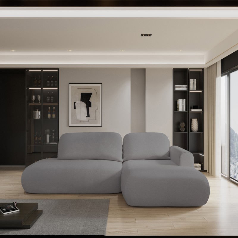 NUVIRA to narożnik, który zachwyca od pierwszego spojrzenia swoją miękką, organiczną formą i subtelną elegancją. To mebel stworzony z myślą o nowoczesnych wnętrzach, w których liczy się nie tylko design, ale również funkcjonalność i wygoda użytkowania. Zaoblone kształty, przytulna faktura tkaniny oraz praktyczne rozwiązania sprawiają, że NUVIRA staje się sercem domowej strefy relaksu.