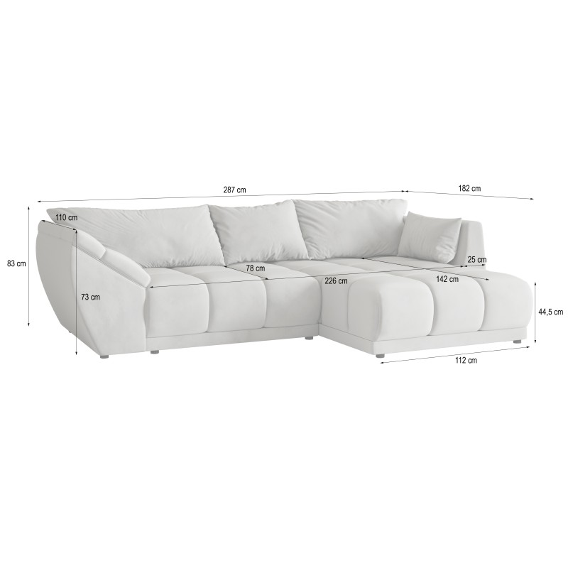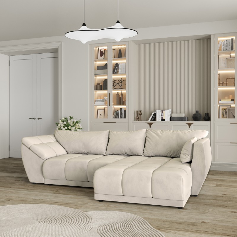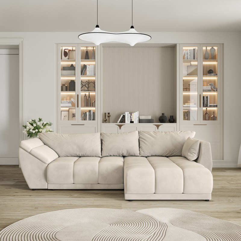 Masseno Narożnik ORENTI z funkcją spania i pojemnikiem na pościel Narozniki L, Rozkładana sofa - Kremowy, MATT VELVET 06