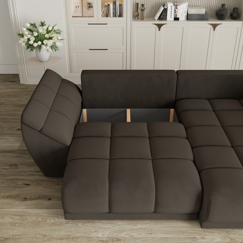 Masseno Narożnik ORENTI z funkcją spania i pojemnikiem na pościel Narozniki L, Rozkładana sofa - Brązowy, MATT VELVET 29