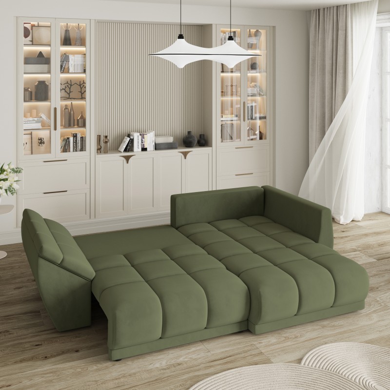 Masseno Narożnik ORENTI z funkcją spania i pojemnikiem na pościel Narozniki L, Rozkładana sofa - Zielony, MATT VELVET 38