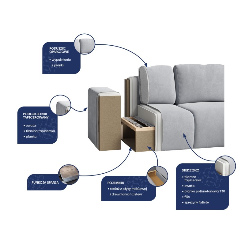 ORENTI to narożnik, który łączy w sobie ponadczasowy wygląd, luksusowe wykończenie i funkcjonalność stworzoną z myślą o codziennym komforcie. Jeśli szukasz mebla, który zachwyci Cię swoją formą i wygodą, a jednocześnie doskonale odnajdzie się w nowoczesnym salonie – ten model jest dla Ciebie.