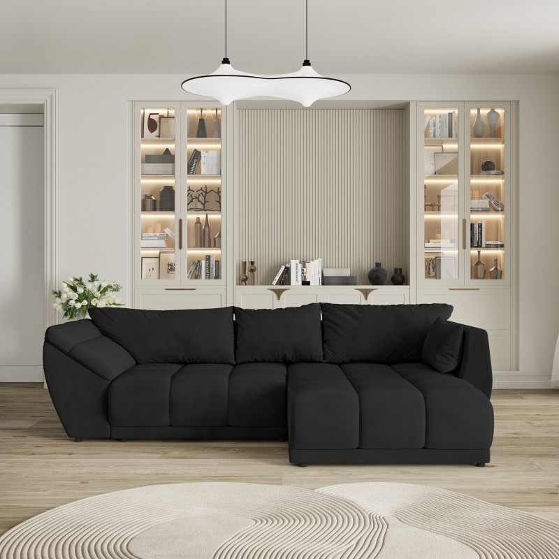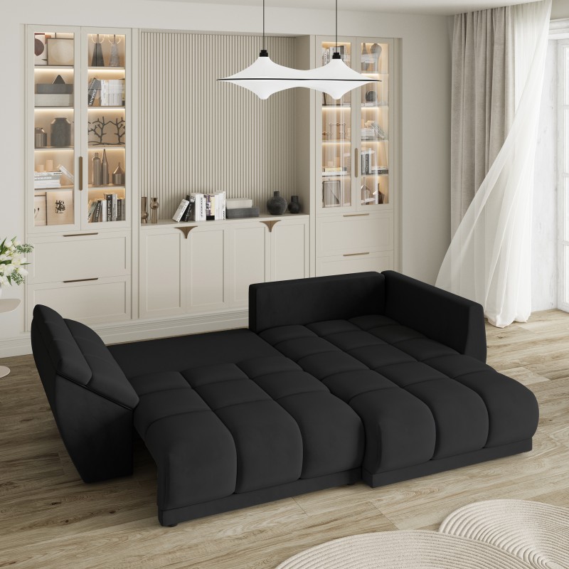 Masseno Narożnik ORENTI z funkcją spania i pojemnikiem na pościel Narozniki L, Rozkładana sofa - Czarny, MATT VELVET 99