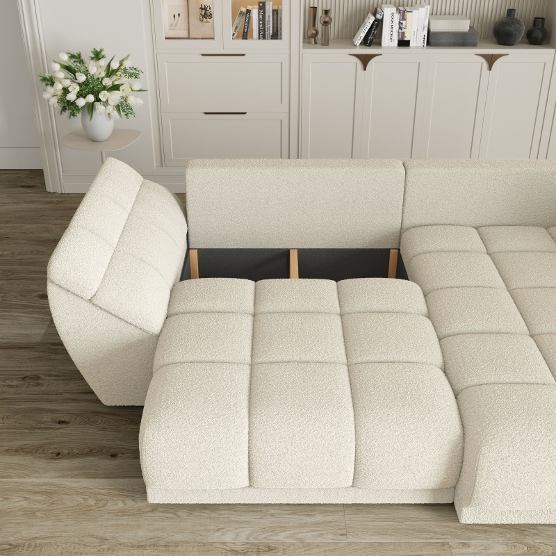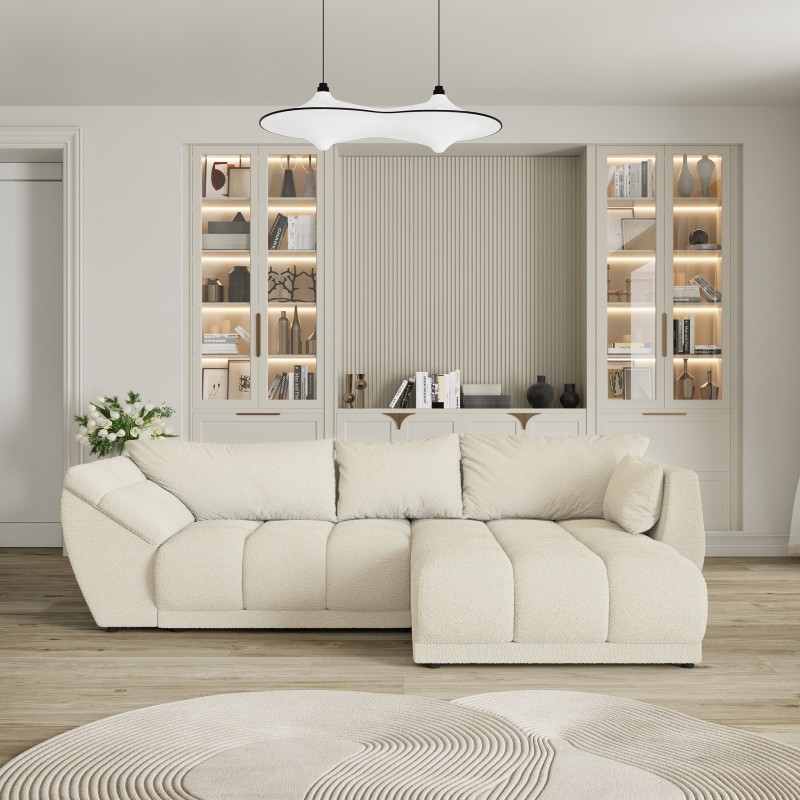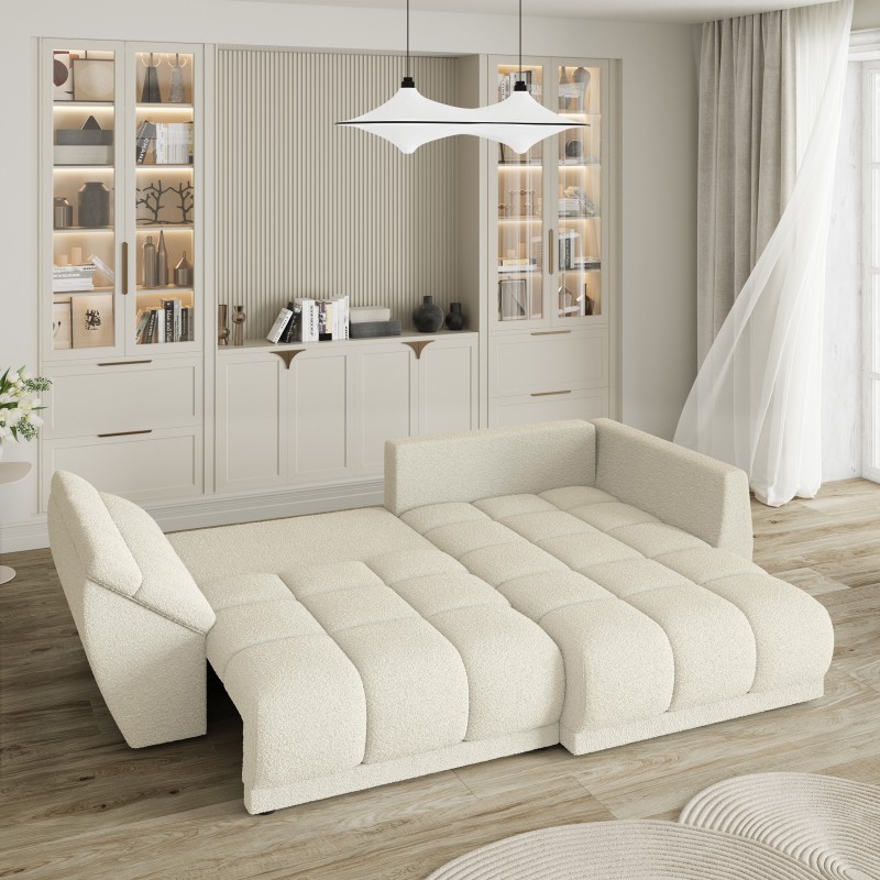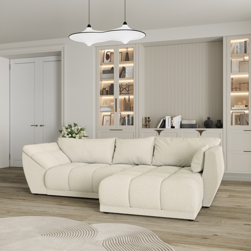 Masseno Narożnik ORENTI z funkcją spania i pojemnikiem na pościel Narozniki L, Rozkładana sofa - Kremowy, QUELLE 02