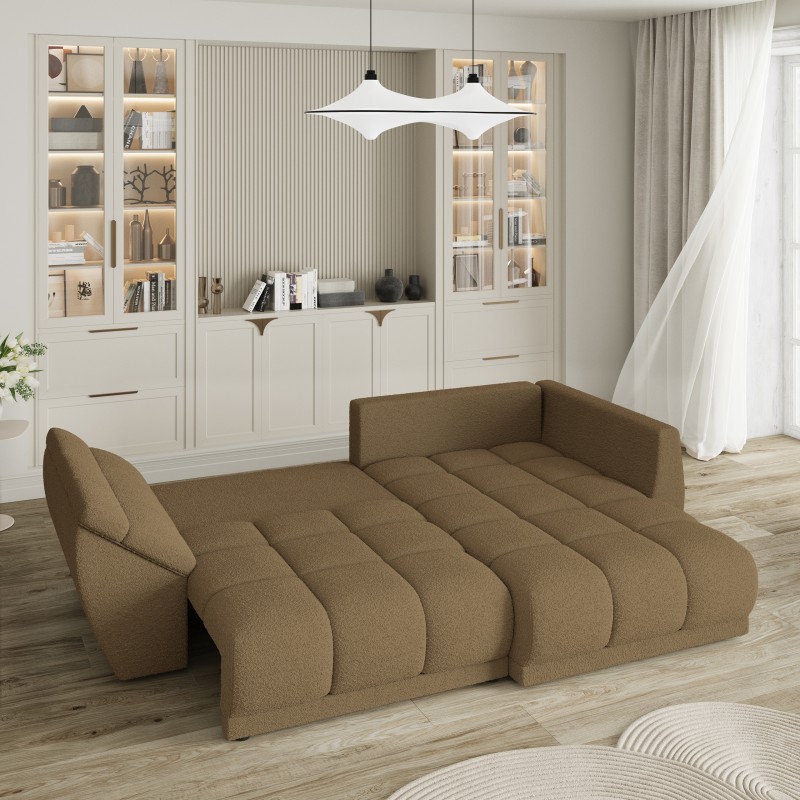 Masseno Narożnik ORENTI z funkcją spania i pojemnikiem na pościel Narozniki L, Rozkładana sofa - Miodowy, QUELLE 17