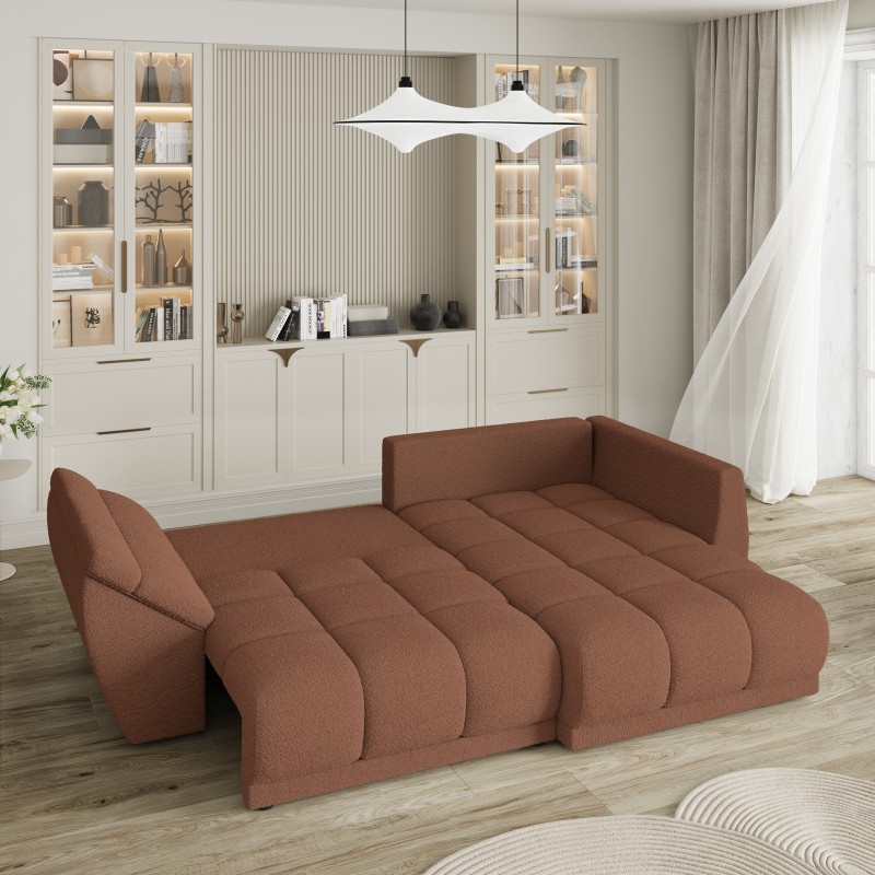 Masseno Narożnik ORENTI z funkcją spania i pojemnikiem na pościel Narozniki L, Rozkładana sofa - Miedziany, QUELLE 54