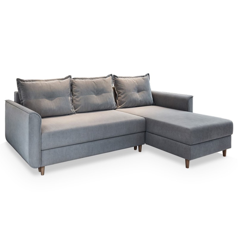Masseno Narożnik PISAN z funkcją spania i pojemnikiem na pościel Narozniki L, Rozkładana sofa - Jasnoszary, PAROS 05
