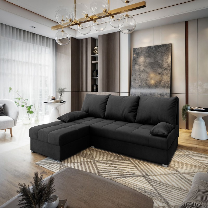 Masseno Narożnik RITA z funkcją spania i pojemnikiem na pościel Narozniki L, Rozkładana sofa - Czarny, MONOLITH 95