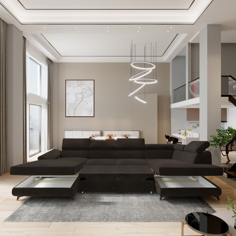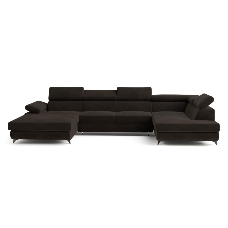 Masseno Narożnik RUBANO z funkcją spania i pojemnikiem na pościel Narozniki U, Rozkładana sofa - Brązowy, MONOLITH 29