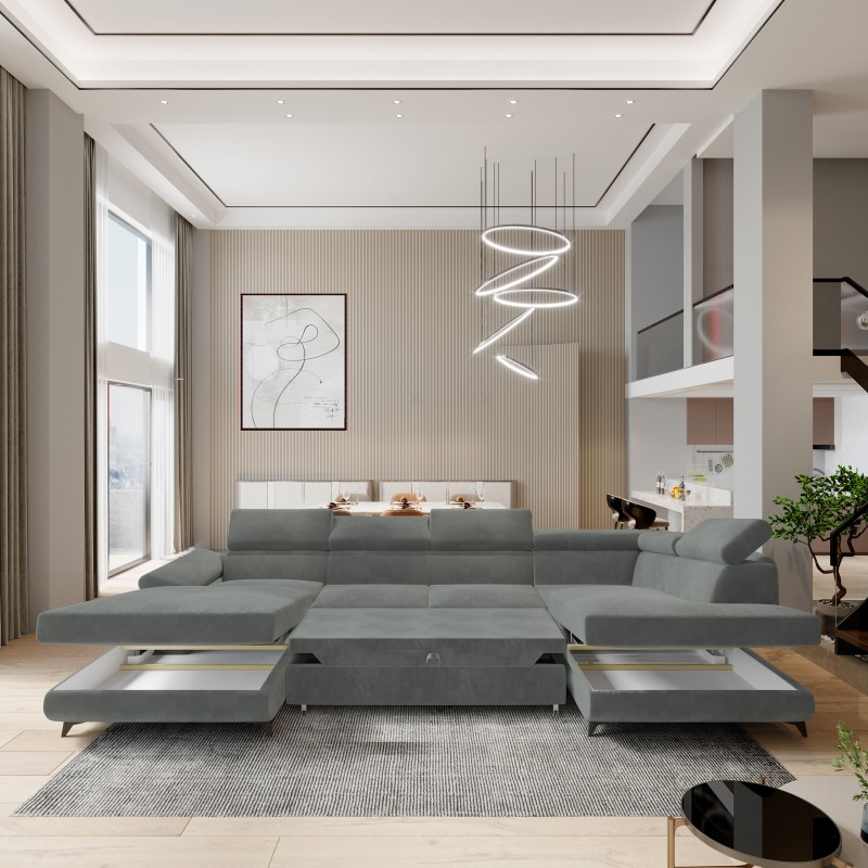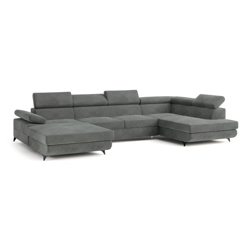 Masseno Narożnik RUBANO z funkcją spania i pojemnikiem na pościel Narozniki U, Rozkładana sofa - Szary, MONOLITH 85
