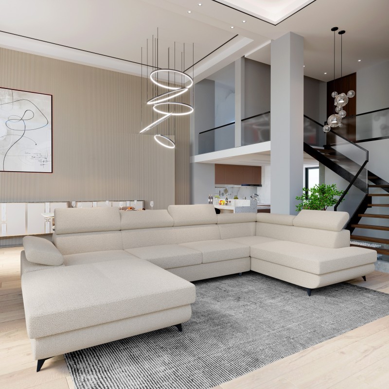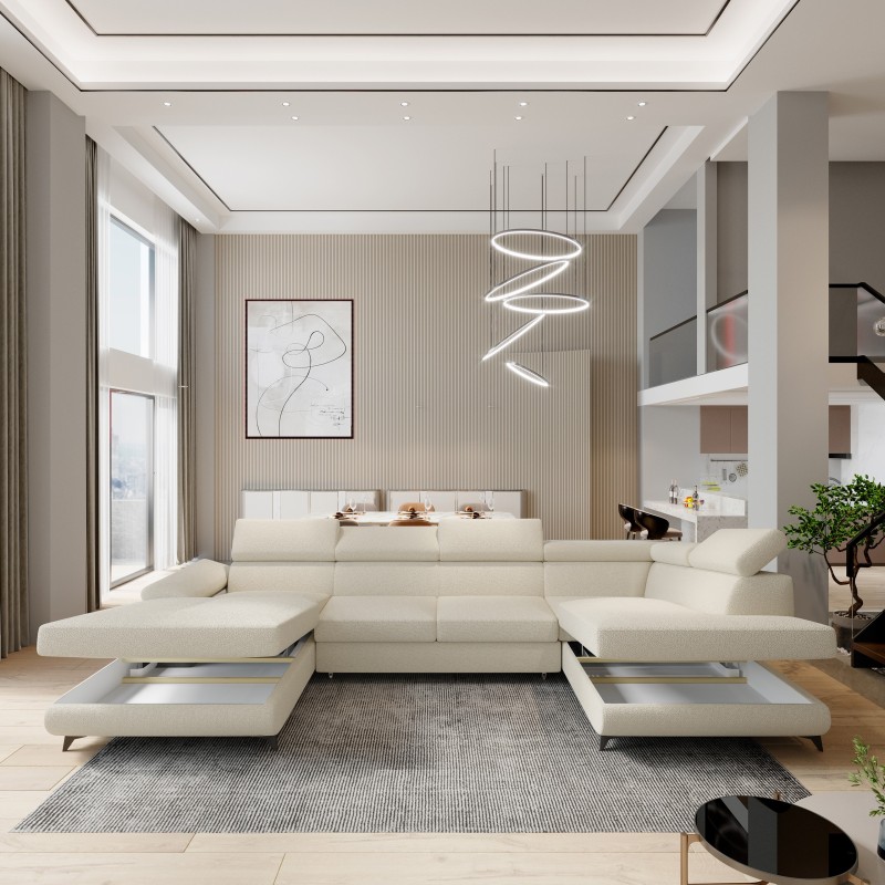 Funkcja spania wbudowana w narożnik pozwala szybko zmienić salon w komfortową przestrzeń noclegową - bez kompromisów, bez wysiłku. Dwa pojemniki na pościel to ukryty atut, który ułatwia życie: pozwalają uporządkować przestrzeń, jednocześnie pozostając całkowicie niewidoczne. Niezależnie od tego, czy urządzasz nowoczesny salon w apartamencie, czy szukasz stylowego mebla do przestronnej strefy dziennej, RUBANO daje Ci pełną elastyczność – dostępny jest w wersji prawo- i lewostronnej. Regulowane zagłówki i podłokietnik umożliwiają personalizację pozycji, zwiększając wygodę w każdej sytuacji – czy to relaks z książką, czy filmowy wieczór. RUBANO to narożnik, który staje się integralną częścią codzienności – subtelnie, ale zdecydowanie.