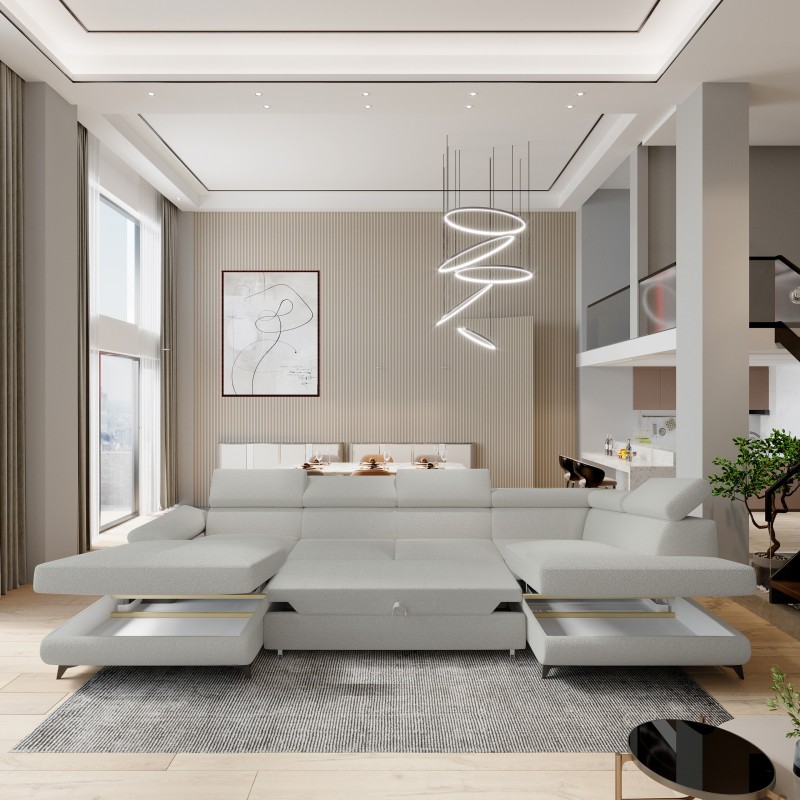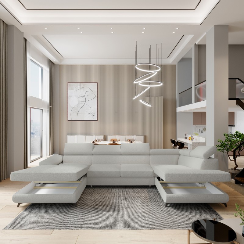 Masseno Narożnik RUBANO z funkcją spania i pojemnikiem na pościel Narozniki U, Rozkładana sofa - Jasnoszary, QUELLE 83