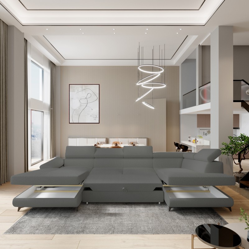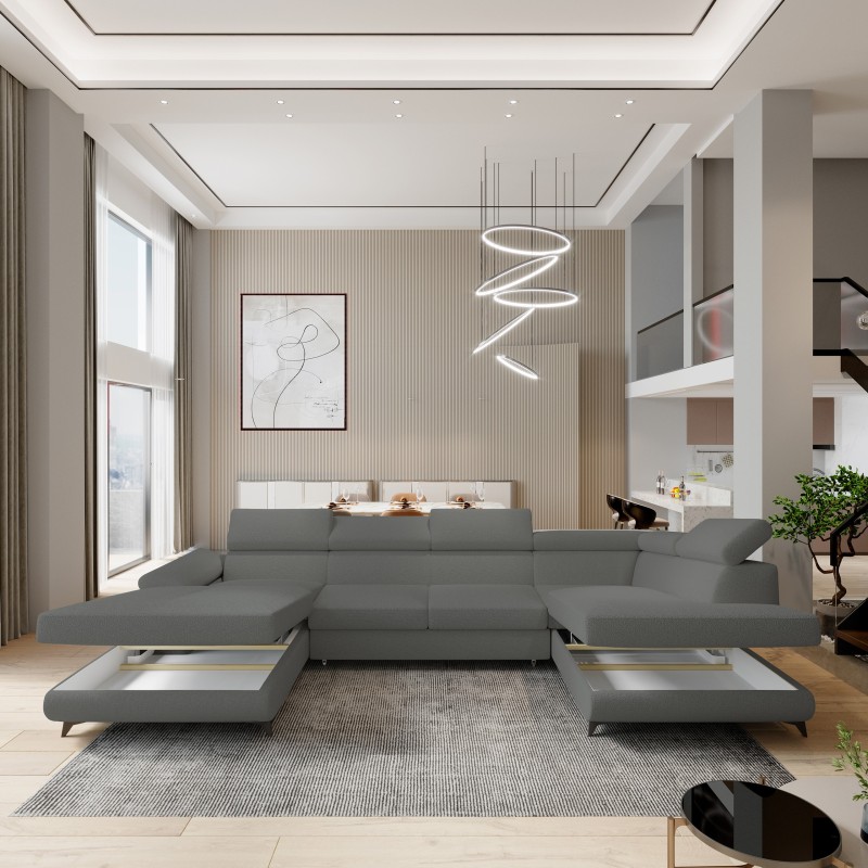 Masseno Narożnik RUBANO z funkcją spania i pojemnikiem na pościel Narozniki U, Rozkładana sofa - Szary, QUELLE 92