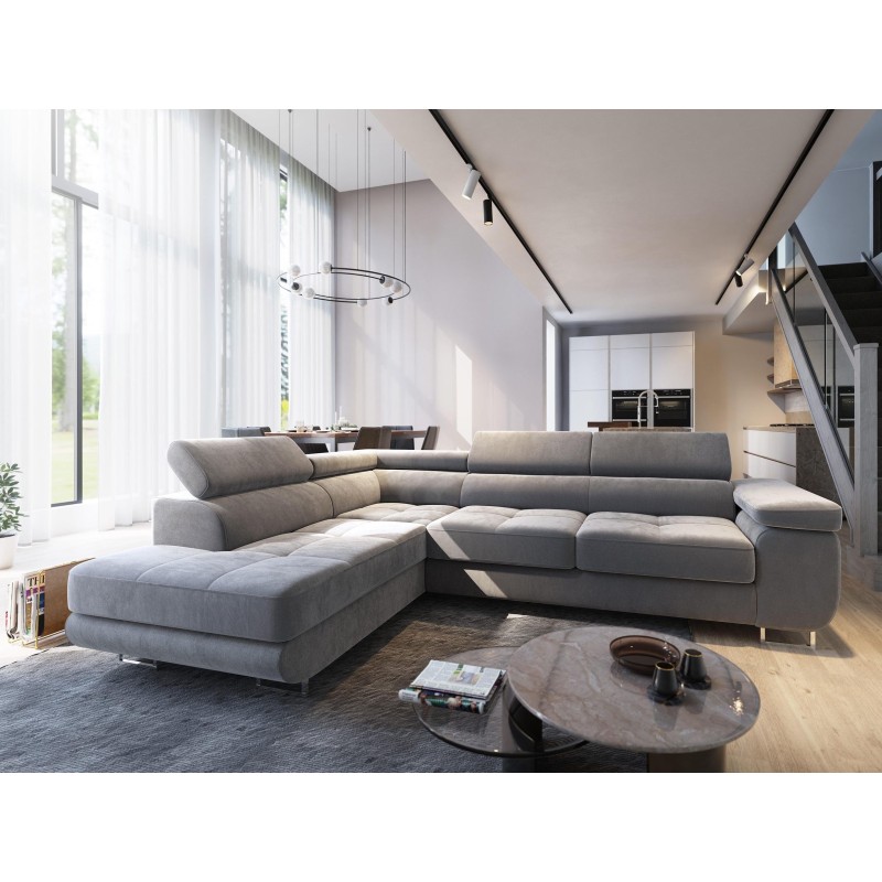 Masseno Narożnik SELVA z Funkcją Spania i Pojemnikiem na Pościel Narożnik L, Rozkładana sofa - Jasnoszary, MONOLITH 84