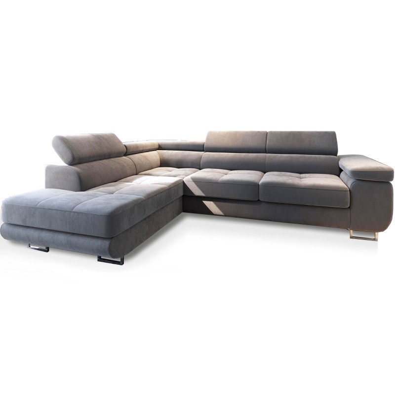 Narożnik wykonany jest z użyciem wypełnienia opartego o sprężyny faliste, trwałe i elastyczne sploty, dzięki którym narożnik zachowuje swój komfort przez cały okres użytkowania. Jednak najwyższą wygodę dodatkowo uzyskujemy dzięki regulowanym zagłówkom, rozsiądź się wygodnie przed wieczornym seansem i poczuj pełen relaks. Dodatkowo rozkładana funkcja spania sprawi, że wielogodzinny maraton filmowy będzie dla Ciebie istną przyjemnością.