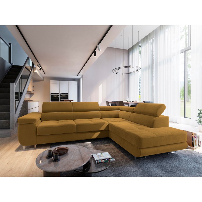 Masseno Narożnik SELVA z Funkcją Spania i Pojemnikiem na Pościel Narożnik L, Rozkładana sofa - Żółty, MONOLITH 48