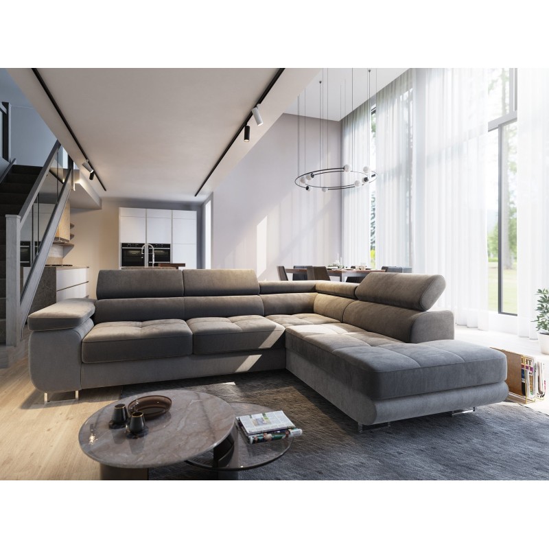 Narożnik wykonany jest z użyciem wypełnienia opartego o sprężyny faliste, trwałe i elastyczne sploty, dzięki którym narożnik zachowuje swój komfort przez cały okres użytkowania. Jednak najwyższą wygodę dodatkowo uzyskujemy dzięki regulowanym zagłówkom, rozsiądź się wygodnie przed wieczornym seansem i poczuj pełen relaks. Dodatkowo rozkładana funkcja spania sprawi, że wielogodzinny maraton filmowy będzie dla Ciebie istną przyjemnością.