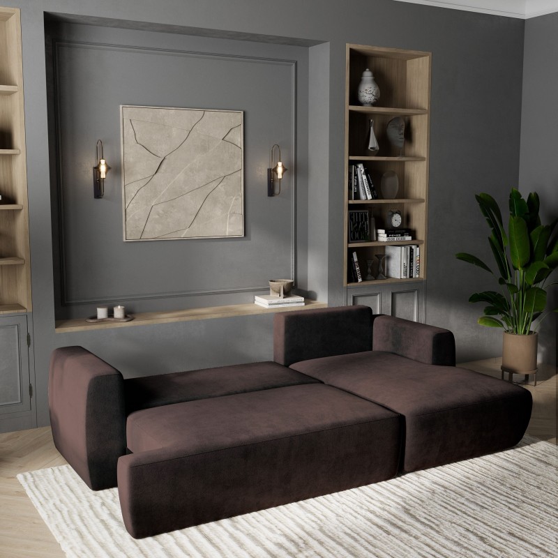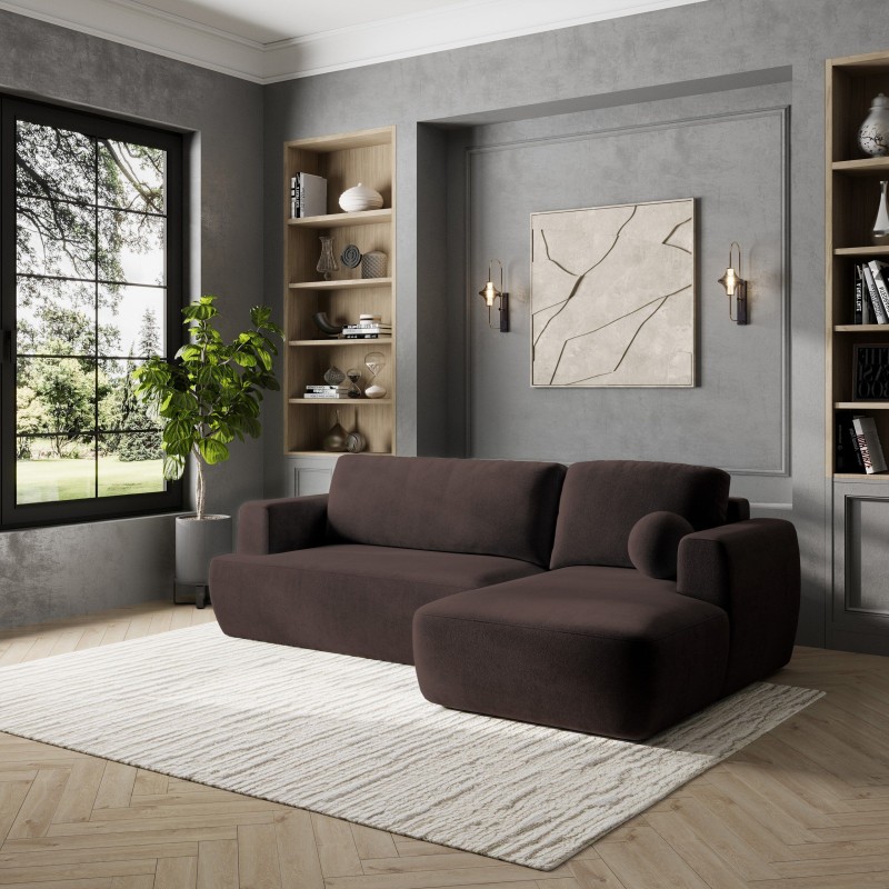 Narożnik SENTI to połączenie designerskiej formy i funkcjonalności, które sprawdzi się w każdym wnętrzu. Jego zaokrąglona bryła z charakterystycznymi wcięciami przyciąga wzrok i nadaje wnętrzu wyjątkowego charakteru. Dostępny w modnych tkaninach – bukla Now Or Never, sztruks POSO oraz pluszowy velvet Kronos – idealnie wpisuje się w aktualne trendy wnętrzarskie.