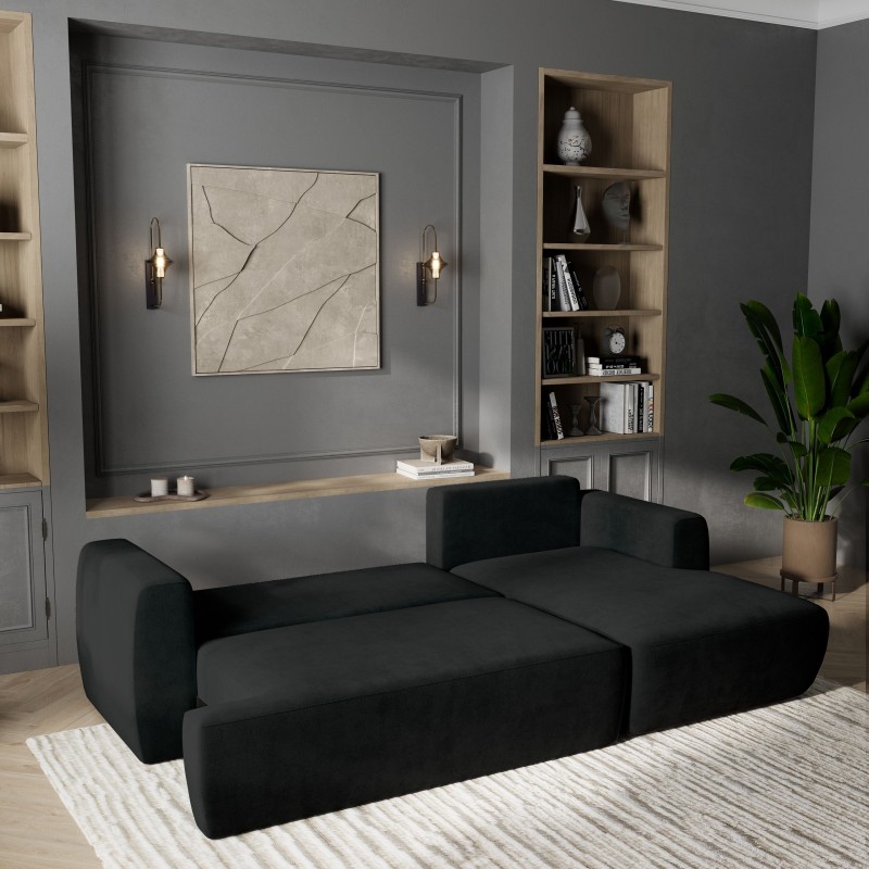 Masseno Narożnik SENTI z funkcją spania i pojemnikiem na pościel Narozniki L, Rozkładana sofa - Czarny, KRONOS 07