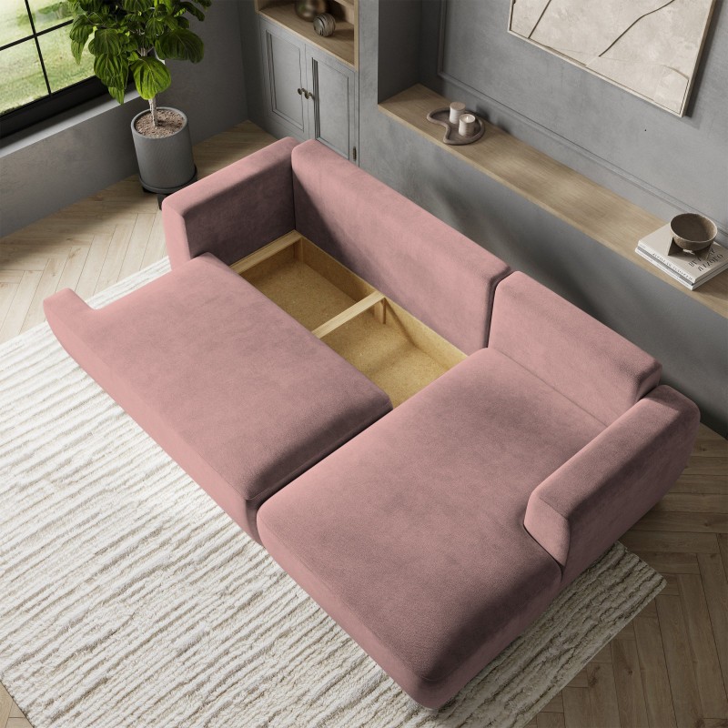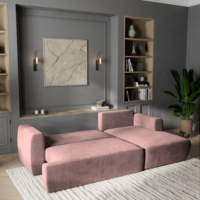 Masseno Narożnik SENTI z funkcją spania i pojemnikiem na pościel Narozniki L, Rozkładana sofa - Pudrowy róż, KRONOS 27