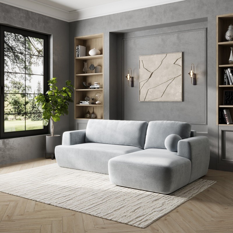 Masseno Narożnik SENTI z funkcją spania i pojemnikiem na pościel Narozniki L, Rozkładana sofa - Jasnoszary, PAROS 05