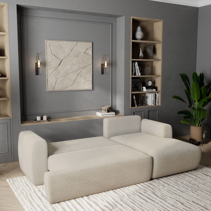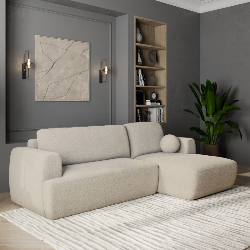Masseno Narożnik SENTI z funkcją spania i pojemnikiem na pościel Narozniki L, Rozkładana sofa - Kremowy, NOW OR NEVER 02