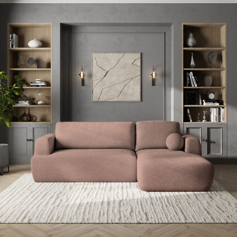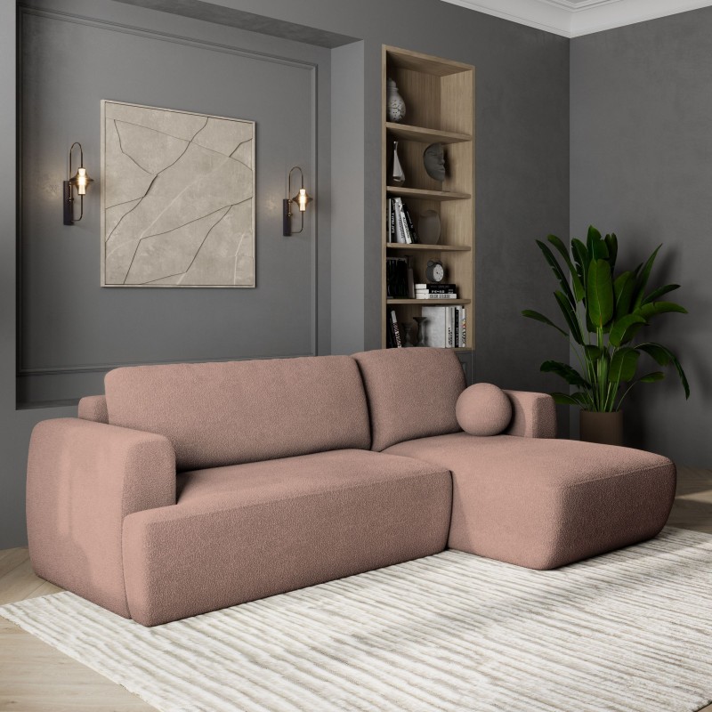 Masseno Narożnik SENTI z funkcją spania i pojemnikiem na pościel Narozniki L, Rozkładana sofa - Pudrowy róż, NOW OR NEVER 61