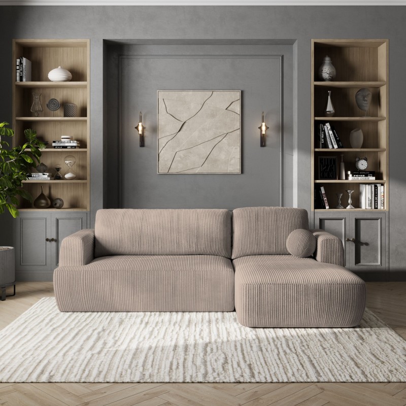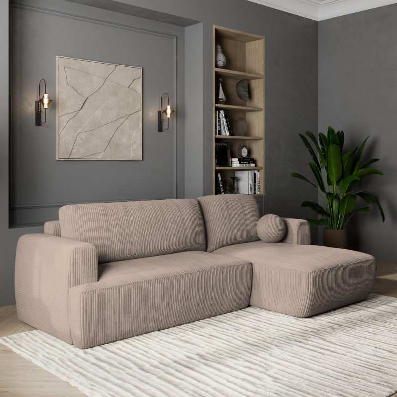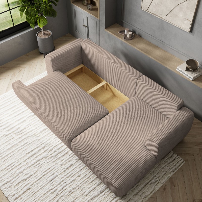 Masseno Narożnik SENTI z funkcją spania i pojemnikiem na pościel Narozniki L, Rozkładana sofa - Beżowy, POSO 02
