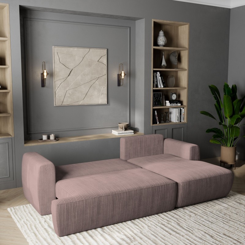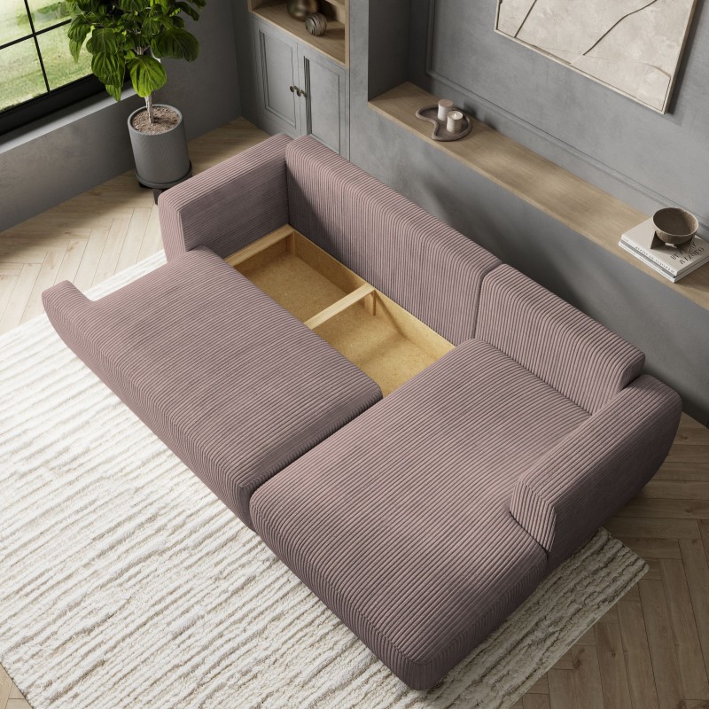 Masseno Narożnik SENTI z funkcją spania i pojemnikiem na pościel Narozniki L, Rozkładana sofa - Wrzosowy, POSO 130